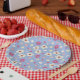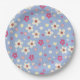 spring flowers on blue background paper plates
