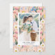 Spring Botanical Flowers Pattern Photo Wedding Thank You Card | Send thanks to family and friends for being part of your special day with this customizable wedding thank you card. It features a botanical pattern of tulips, narcissus. pink freesia. blue iris, aquilegia and foliage. This botanical thank you card will also be perfect for graduations and other events.