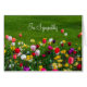Spring flower border filled with tulips and narcissus with a lush green lawn. Open for your own message of condolence. Fully customisable.