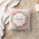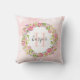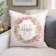 Spring Garden Floral Wreath Monogram Throw Pillow