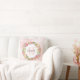Custom monogrammed throw pillow personalized with your baby girl's name. This sweet feminine design has a watercolor floral wreath in colorful shades of pink and green. Use the design tools to edit the text fonts and colors and add photos to create a one of a kind baby shower gift or custom nursery decor.