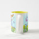 Designed after rejoicing and seeing the first signs that spring. Fun spring girl chasing birds in a field of daffodils mug. Ideal art to celebrate, getting out of the house once more as finally “Spring’s in the air”.