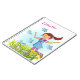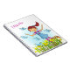 Cute graphic art of a dark haired girl in spring time chasing birds in a field of daffodils and wildflowers. Customize with your girls name, currently reads Ellbella. Original graphic art and design by Sarah Trett.