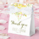 Lovely wedding favor box in a cheerful yellow and green color scheme on a crisp white background. Original illustration of floral blooms and greenery adorn the top front and back of the box. Personalize with your text, the bride and groom names and wedding date. Perfect for an outdoor, spring, summer, evening, or garden wedding.
