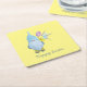 Cute watercolor tomte style gnome with sweet Spring bouquet of flowers on yellow background and customizable "Happy Easter" text.