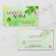 Nature spring green background with pink butterfly, makeup artist business card template.