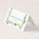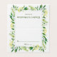 Simple and classy, these wedding table place cards are the perfect way to seat all of your friends and family at your big spring or summer big day celebration. Features greenery around a frame that surrounds green text and a pattern of the dill, mint, rosemary, thyme, parsley, olive branch, and other leaves. The interior is covered by a pattern of the medicinal herbs. All green text is customizable to fit your wedding day celebration needs.