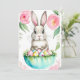 Spring green Pink Flowers Bunny Easter Spring Egg Invitation