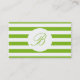 Spring green and white stripes make up the background stripes with white circle at top left. White Monogram letter within circle. Text on back in green - ready to be customized