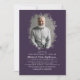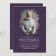 Dreamy funeral remembrance photo invitation featuring a picture of the person, and a celebration of life template with the editable backside background color.