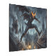 The legendary urban terror Spring-Heeled Jack leaps across the soot-stained rooftops of Victorian London with supernatural agility. Fiery eyes glow beneath his diabolical cowl as he vanishes into the foggy night of the industrial city. This is perfect for fans of Urban Folklore, Victorian Steampunk, and Gothic Horror.