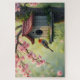 A red-headed bird at a tile-roofed birdhouse placed in a flowring cherry tree creates a lovely jigsaw puzzle that's perfect for anyone who loves birds, flowers, and nature.