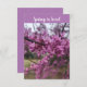 Image of Redbud tree on the front with the words "Spring is here!" on a purple background. Blank on the back for your message.