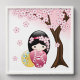 Spring Kokeshi Doll Cute Japanese Geisha Girl Peel And Stick Photo Tile