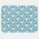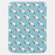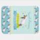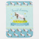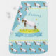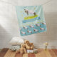 Sweet dreams spring lamb skipping cute baby name blanket. Cute baby blanket, featuring cute a watercolor painting of a whimsical lamb skipping in a flower meadow with butterflies and sheep pattern on the reverse. Personalize with your own name. Cute lamb on a teal aqua sky background ideal for a farm themed baby shower or new baby gift. Other sheep matching items available. © Uniquely painted in watercolor and designed by Sarah Trett.