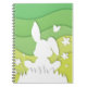 Cute cartoon paper cut easter bunny on grass, flowers butterfly and bees, green yellow spring landscape, easter holidays rabbit