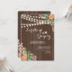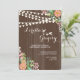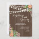 Strung lights and clusters of pink, blue and white flowers against a chocolate, wood-grain background make a lovely invitation perfect for an outdoor bridal shower, engagement party, anniversary celebration and more. (<a href='http://www.freepik.com/free-vector/floral-wedding-invitation-with-wood-texture_1048031.htm'>Designed by Freepik</a>). <br/><br/>The card is easy to customize with your wording, font, font color and choice of six paper types.<br/><br/>Not exactly what you're looking for? All our products can be custom designed to meet your needs at no extra charge.<br/><br/>Simply contact us at askcottonlamb@gmail.com<br/><br/>Coordinating products available:
