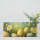 A picturesque spring motif with artfully decorated Easter eggs set amidst lush grass and blooming flowers. The yellow and green tones radiate warmth and freshness, while the softly shaded background with fir trees lends a harmonious depth. A perfect picture that combines the festive Easter mood and the awakening nature.