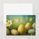 A picturesque spring motif with artfully decorated Easter eggs set amidst lush grass and blooming flowers. The yellow and green tones radiate warmth and freshness, while the softly shaded background with fir trees lends a harmonious depth. A perfect picture that combines the festive Easter mood and the awakening nature.
