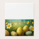 A picturesque spring motif with artfully decorated Easter eggs set amidst lush grass and blooming flowers. The yellow and green tones radiate warmth and freshness, while the softly shaded background with fir trees lends a harmonious depth. A perfect picture that combines the festive Easter mood and the awakening nature.