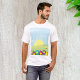A spring meadow scenic landscape with flowers and a bee. This design looks really effective on this Mens T-Shirt