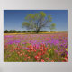 Spring mesquite trees growing in wildflowers, poster