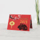 Beautiful Chinese illustration of a city by spring night with cherry blossoms, lantern (with rabbit ideogram), "Happy Chinese New Year" in Chinese and English and customizable 2023 + a rabbit "paper-cut" (image printed). Design on horizontal greeting card with the complete illustration inside. Available in vertical design. Matching holiday postcard and more... Perfect for Chinese New Year of The Rabbit 2023.