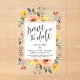 Set the tone for your special day with our Spring Orange Yellow Floral Save the Date Acrylic Invitations. These stunning invitations are crafted from premium, clear acrylic and adorned with a vibrant floral design in shades of orange and yellow, evoking the warmth and joy of spring. Perfect for weddings or any other elegant events, these invitations make a memorable first impression.