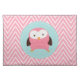 Custom cloth placemat features an adorable vector illustration of a cartoon owl on a very trendy and chic zigzag chevrons pattern. Personalize with your monogram, name, initials or text of your choice for a complete custom look.
