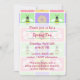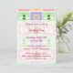 This invitation features pastel pink, yellow, purple, and green squares that are adorned with ladybugs, dogwood blossoms, daisies, and honeybees and then bordered by tight white stitching to create a fun and sweet spring patch-like pattern. The lower portion of the card has some sample text that you can customize to create a personalized invite for your party or event.