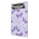 Spring gray-blue seamless pattern with transparent violet butterflies and curls (vector EPS 10) © and ® Bigstock® - All Rights Reserved.