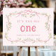 This 1st birthday party foam board sign features pink blossom floral frame adorned with bows and butterflies. For more advanced customization of this design, please click the DESIGN TOOL BUTTON above! Matching items are also available.