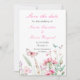 Pretty wedding save the date invitation with wildflowers in pink, and cute butterflies. Perfect for a spring or summer wedding. The words can be changed to suit your own details or requirements