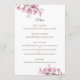Menu with watercolor pink cherry blossom flowers are perfect for romantic spring wedding. This template is set up and ready for you to overwrite with all your own details.
