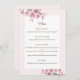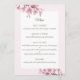 Menu with watercolor pink cherry blossom flowers are perfect for romantic spring wedding. This template is set up and ready for you to overwrite with all your own details.
