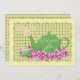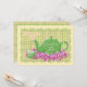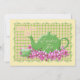 Green teapot and teacup nestled in pretty pink spring flowers on a unique green, pink and cream plaid background is a delightful invitation for an Easter tea party. Personalize party information on back of invitation in the template provided. You may also enjoy this pretty design on stamps, stickers and other tea party products available in my store. Original art and design by Anura Design Studio.
