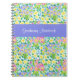 A very pretty, customizable spiral notebook, with a pattern of pink, yellow and blue primroses and a sky blue panel for your name or the title of the notebook, from a handpainted watercolour design by Judy Adamson. Would also make an excellent journal.