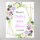 This beautiful and elegant welcome sign features watercolor purple flowers and foliage. The text combines handwritten script and serif fonts for a stylish and modern look. This is perfect for a spring rustic baby shower.
