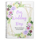 This beautiful and elegant notebook would make a great wedding planner, photo album, guest book and more. The design features watercolor purple flowers and foliage on a gold geometric frame. The text combines handwritten script and serif fonts for a stylish and modern look. This is perfect for a spring rustic wedding.