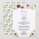 This beautiful and elegant wedding menu features watercolor purple flowers and foliage. The text combines handwritten script and serif fonts for a stylish and modern look. This is perfect for a spring rustic wedding.