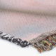 A quality printed throw has its advantages. This is a much finer weave throw than its loopier cousins, and though lighter, it is worth the investment for custom room accessorizing. The back is much prettier than the typical brown, and the fringe on the long sides very vivid, the selvage nicely done. Before photographing, I washed the throw in cold water, delicate, with a thicker woven throw the same size. On tumble dry low, this throw was dry in half the time as the other. This is a very practical quality if you use throws for furniture covers or to wrap up in frequently. The sleekness of the fabric makes it a great layer for accenting or protecting without the feeling of sitting on too much stuff. Perfect for napping or when you feel a light chill coming on. The color printing is beautiful and on this fabric, matched the design and color of my Photoshop image. This is an advantage for blending room fabrics and colors. The fringe on the short sides prints the colors from the design image and therefore varies from the side fringe. I streaked a white fractal line through the plaid pattern to give the illusion of weaving. This printed as crisp as an illusory thread, and put some white in the short side fringe, showing another advantage of print vs loomed- for artistic purposes, line lines, detail, and color integrity can be planned and preserved. My loomed throws have color limitations and more of a needlepoint texture. Print throws reproduce an exact image. The throw felt a little stiff straight out of the package, but this went away in the first delicate wash. Of course I searched the wash water for ink or bleeding and there was none.