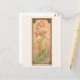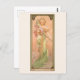 A fashion postcard with the fine art illustration from the Art Nouveau Period, titled Spring (1900), by Alphonse Mucha (1860-1939), a Czech Artist. A woman in a green dress with a bouquet of flowers to personify the spring season. The Seasons or Four Seasons Series is the name of three different color lithograph series produced by the artist. They were produced in 1896, 1897, and 1900.