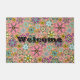 Doormat Welcome Door Mat with customizable text template Welcome typography and printed with Spring Season Retro Flower Colors Seamless Pattern original hand drawn graphic design artwork illustration by TheFabricSeal print on demand shop at Zazzle.com #ZazzleMade ©️Original. https://www.zazzle.com/store/thefabricseal