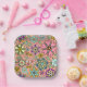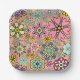 Square Paper Plates printed with Spring Season Retro Flower Colors Seamless Pattern original hand drawn graphic design artwork illustration by TheFabricSeal print on demand shop at Zazzle.com #ZazzleMade ©️Original. https://www.zazzle.com/store/thefabricseal