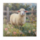 Spring Sheep with Wildflowers Painting Ceramic Tile