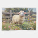 Spring Sheep with Wildflowers Painting Kitchen Towel