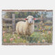 Spring Sheep with Wildflowers Painting Throw Blanket