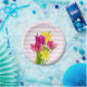 Set a pretty holiday table with this pink tulip and daffodil flower paper plate. This plate features a pastel pink and white striped background and a graphically designed overlay of pink tulips and yellow daffodils. The spring bouquet makes the paper plate a good choice for Easter or Mother's Day.