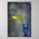 Yellow tulip in blue sundae glass.
