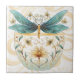 Spring Themed Whimsical Blue and Gold Dragonfly Ceramic Tile